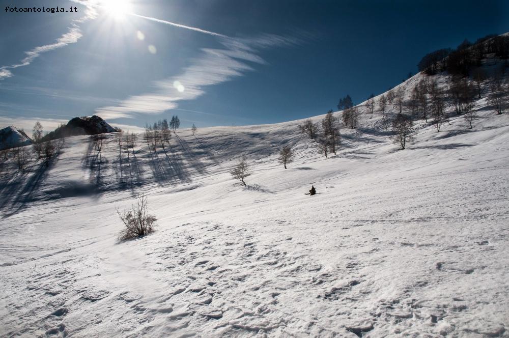 Molto bello l' effetto allungato delle ombre degli alberi sulla neve e la nuvola che da profondità...ciao mario